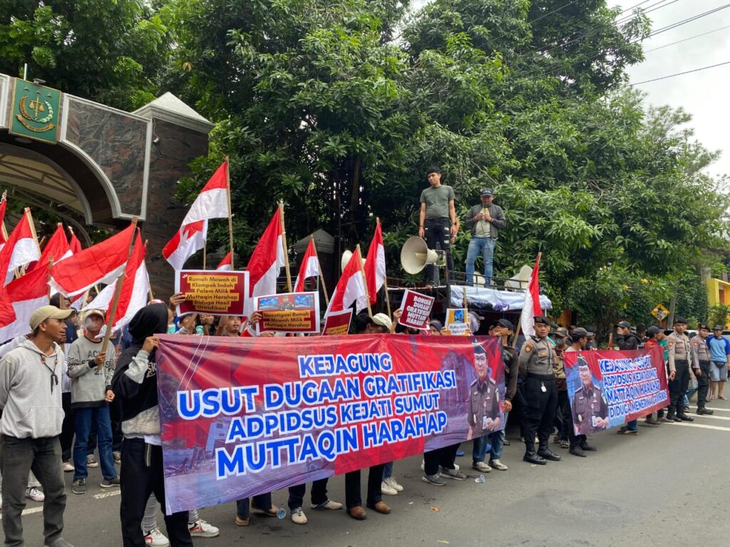 “Kejagung jangan tinggal diam, segera investigasi rumah mewah di Komplek Palem Indah milik Adpidsus Kejati Sumut Muttaqin Harahap karena diduga hasil gratifikasi,” katanya, depan Kejagung.
