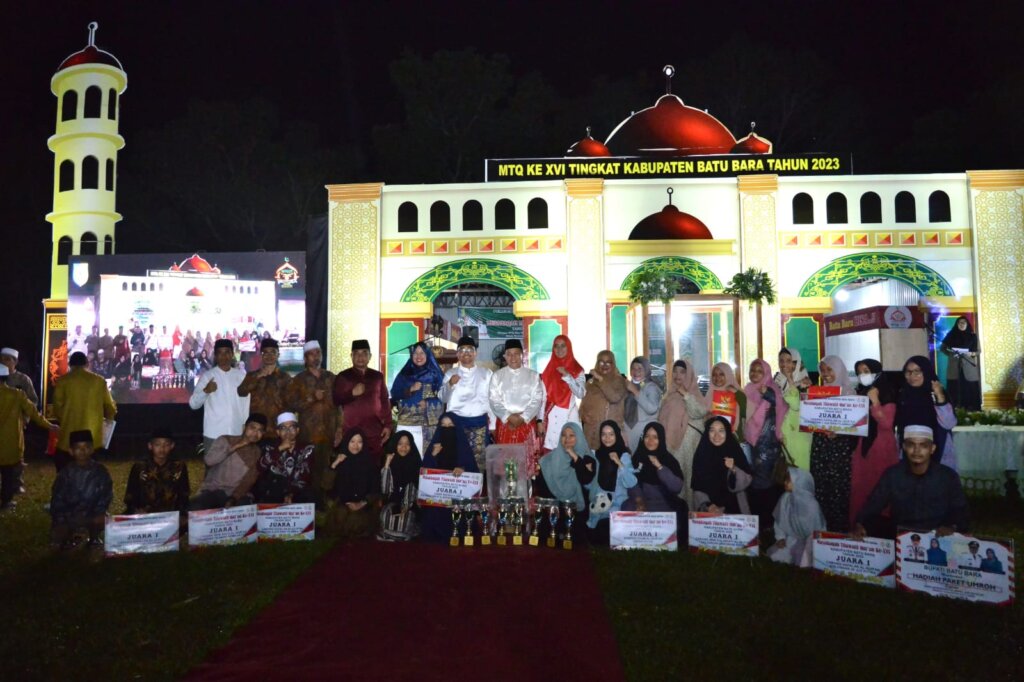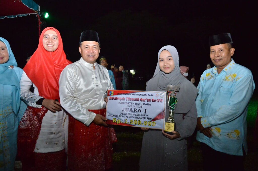 Sebagai bentuk apresiasi kepada pemenang Musabaqah Tilawatil Qur’an (MTQ) tingkat Kabupaten Batu Bara, Bupati Batu Bara Ir. H. Zahir, M.AP., menyerahkah hadiah paket umrah pada saat acara penutupan MTQ di Lapangan Bola Kaki Dolok Pop, Desa Perkebunan Dolok, Kecamatan Lima Puluh, Minggu (19/03/2023).