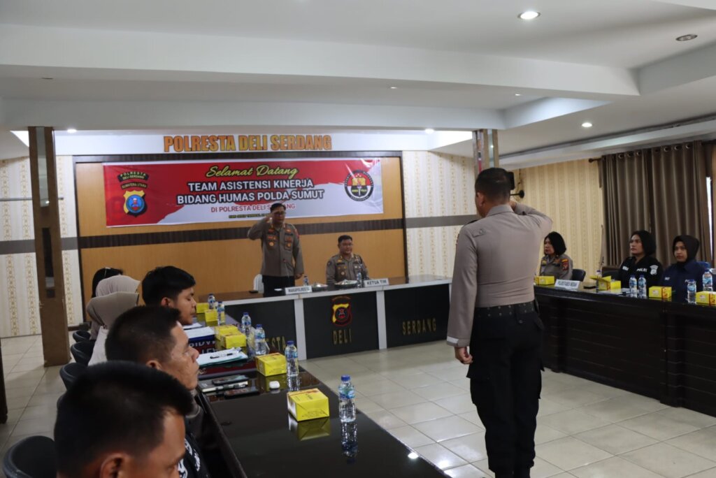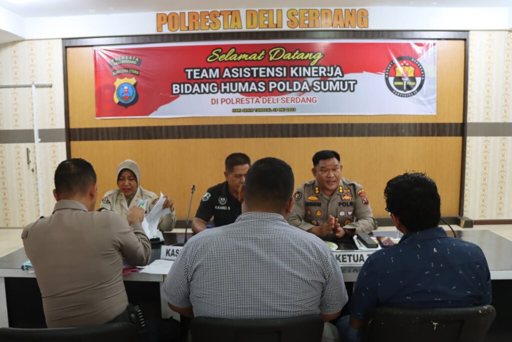 Bertempat di Aula Tri Brata Polresta Deli Serdang, Sie Humas Polresta Deli Serdang kedatangan Tim Asistensi Kinerja dari Bid Humas Polda Sumut, Senin (29/05/2023) siang.