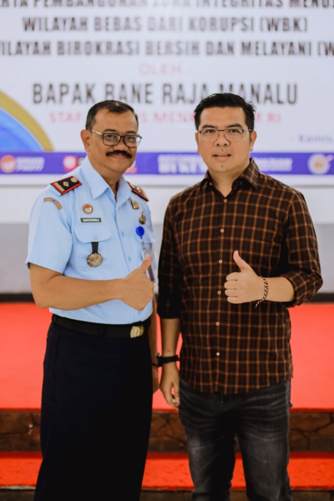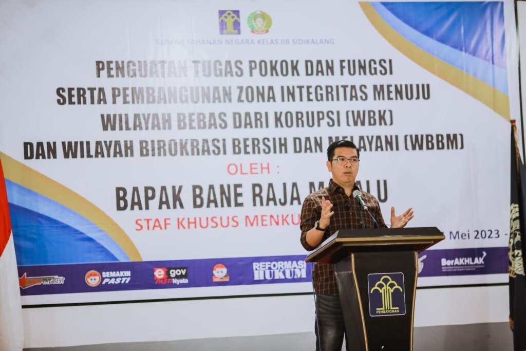 Staf Khusus Menteri Hukum dan HAM RI, Bane Raja Manalu memberikan penguatan tugas pokok dan fungsi serta pembangunan Zona Integritas menuju Wilayah Bebas dari Korupsi (WBK) serta Wilayah Birokrasi Bersih dan Melayani (WBBM) di Rutan Kelas IIB Sidikalang, Kabupaten Dairi, Sumatera Utara, Kamis