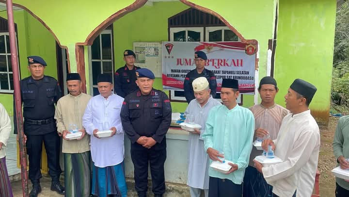 Tapsel-Dalam semangat Jumat Berkah, Personel Batalyon C Satuan Brimob Polda Sumut melaksanakan aksi sosial di Masjid Nurul Huda, Dusun Gunung Sari Indah, Desa Silinggom Linggom, Kecamatan Padang Sidimpuan Timur. Kegiatan yang dipimpin oleh Ipda Golden Silalahi, S.H., ini mencerminkan kepedulian dan kebersamaan antara Brimob dan masyarakat. Jumat (13/12/2024)