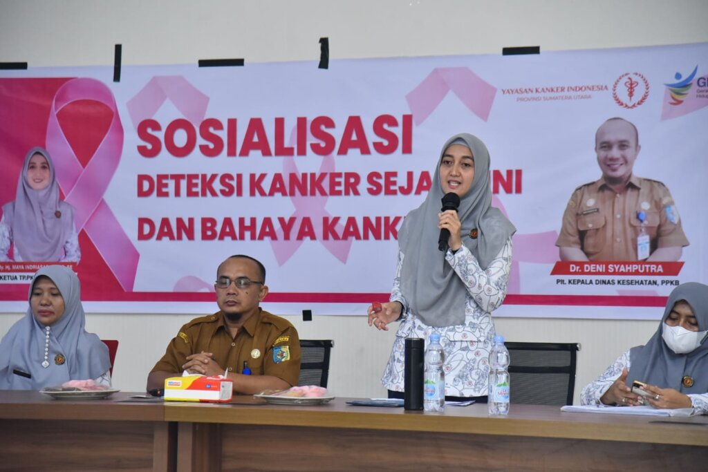 Hal tersebut dikatakan Ny. Maya saat membuka kegiatan Sosialisasi dan Penanganan Kanker di Kabupaten Batu Bara yang digelar di aula Kantor Dinas Kesehatan Pengendalian Penduduk dan Keluarga Berencana Kabupaten Batu Bara, Kelurahan Lima Puluh Kota, Kecamatan Lima Puluh, Selasa (18/07/2023).