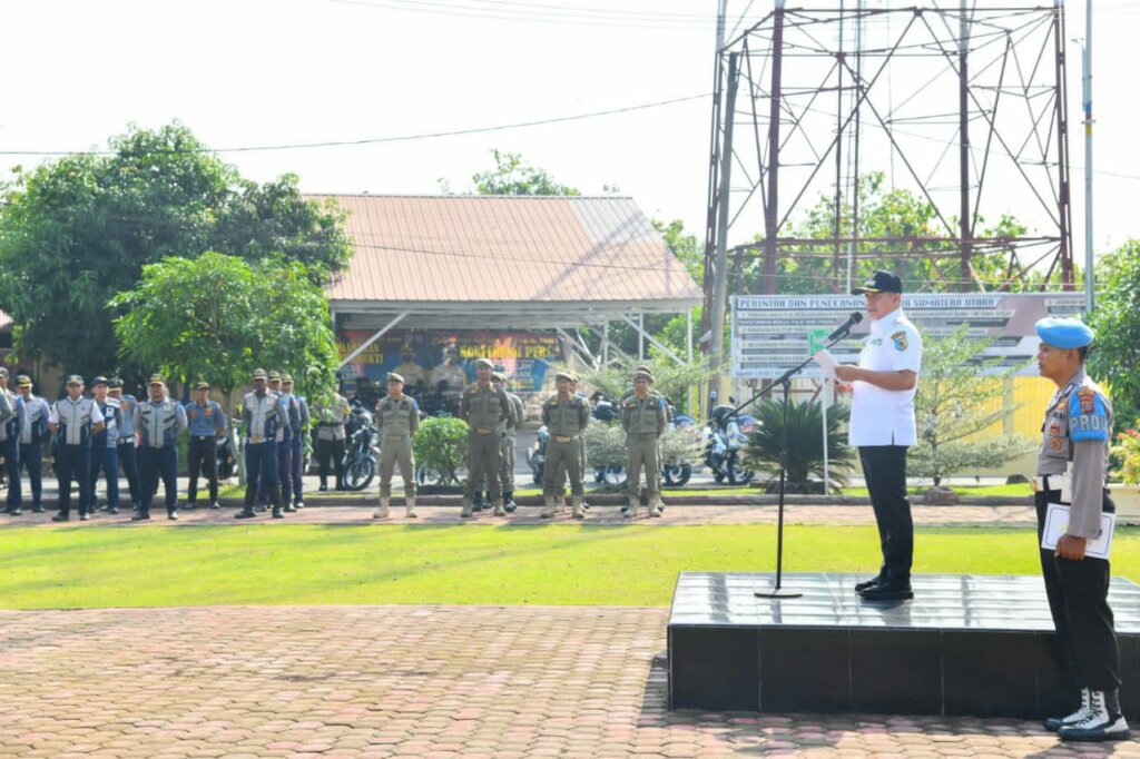 Bupati Batu Bara Ir. H. Zahir, M.AP., memimpin apel gelar pasukan Operasi Keselamatan Toba 2023 di Lapangan Mapolres Batu Bara, Jl. Perintis Kemerdekaan, Kecamatan Lima Puluh, Batu Bara, Rabu (08/03/2023).