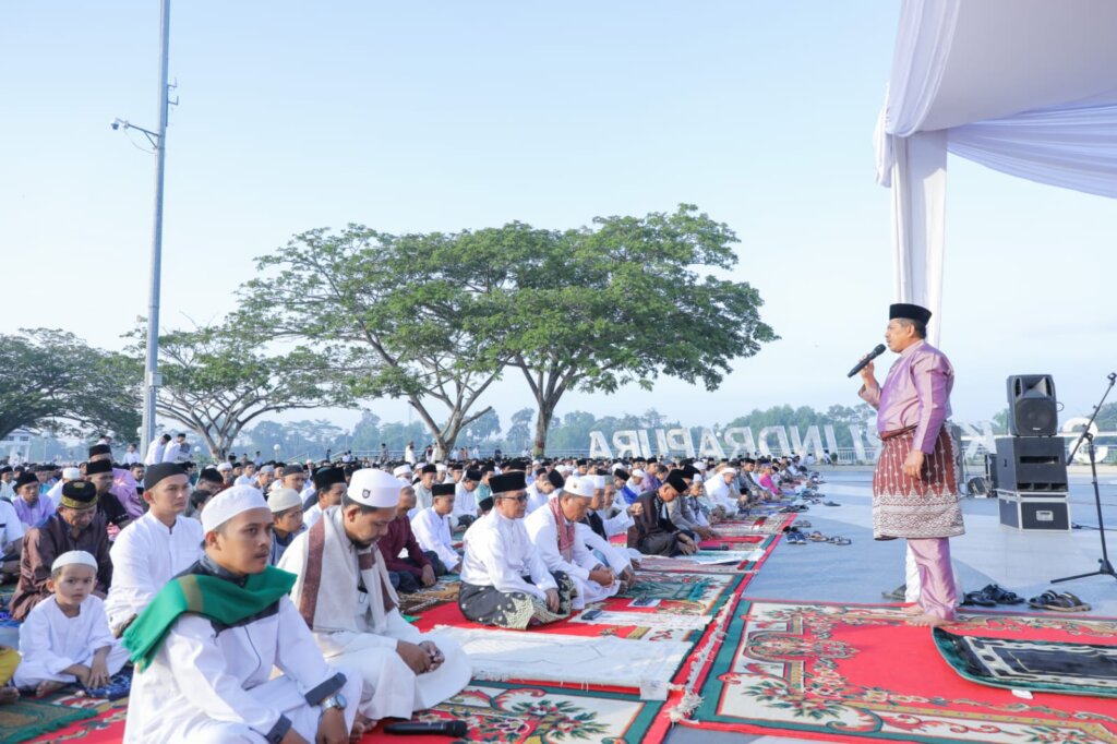 Diawal sambutannya, Bupati Siak Alfedri mengucapkan rada syukur karena hari ini bisa melaksanakan sholat Idul Adha 1444 H, di halaman Siak Bermadah bersama masyarakat Siak.