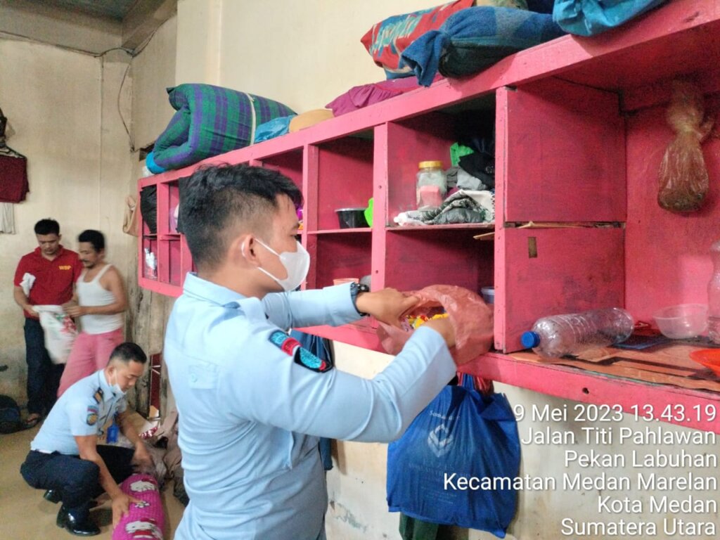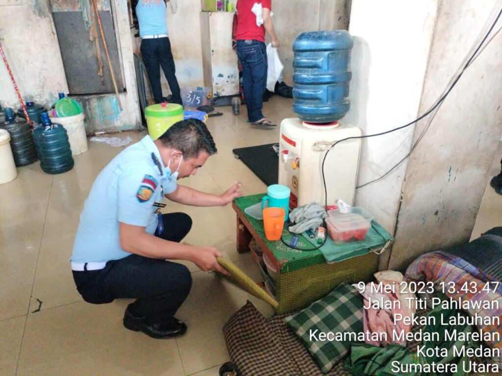 Sebagai Bentuk Implementasi 3 Kunci Pemasyarakatan Maju dalam peningkatan kewaspadaan keamanan dan ketertiban serta wujudkan Zero Halinar, Rumah Tahanan Negara (Rutan) Kelas I Labuhan Deli Kanwil Kemenkumham Sumut melaksanakan giat pemeriksaan teralis besi dan Penggeledahan kamar hunian Warga Binaan. Selasa (09/05/2023).