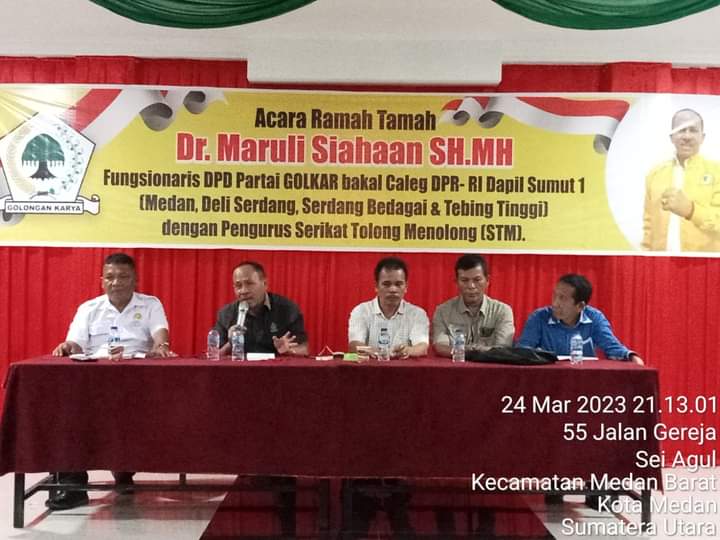 Bapak MARULI SIAHAAN, didampingi, Fredy Siahaan (Pengurus Golkar)Menyampaikan Program Beliau bersama Partai Golkar Sumut serta Memohon Doa Restu dari Para Anggota STM Wilayah Medan Barat, Medan Petisah, Medan Helvetia untuk Rencana Maju sebagai BACALEG DPR RI dari Partai Golkar Dapil Sumut I meliputi Medan, Deli Serdang, Serdang Bedagai & Tebing Tinggi, yang mana disambut Baik dengan Pernyataan dari para Pengurus STM Siap Mendukung dan Memenangkan Bapak MARULI SIAHAAN SABAM MANALU (Calon DPD RI) pada PEMILU 2024 mendatang