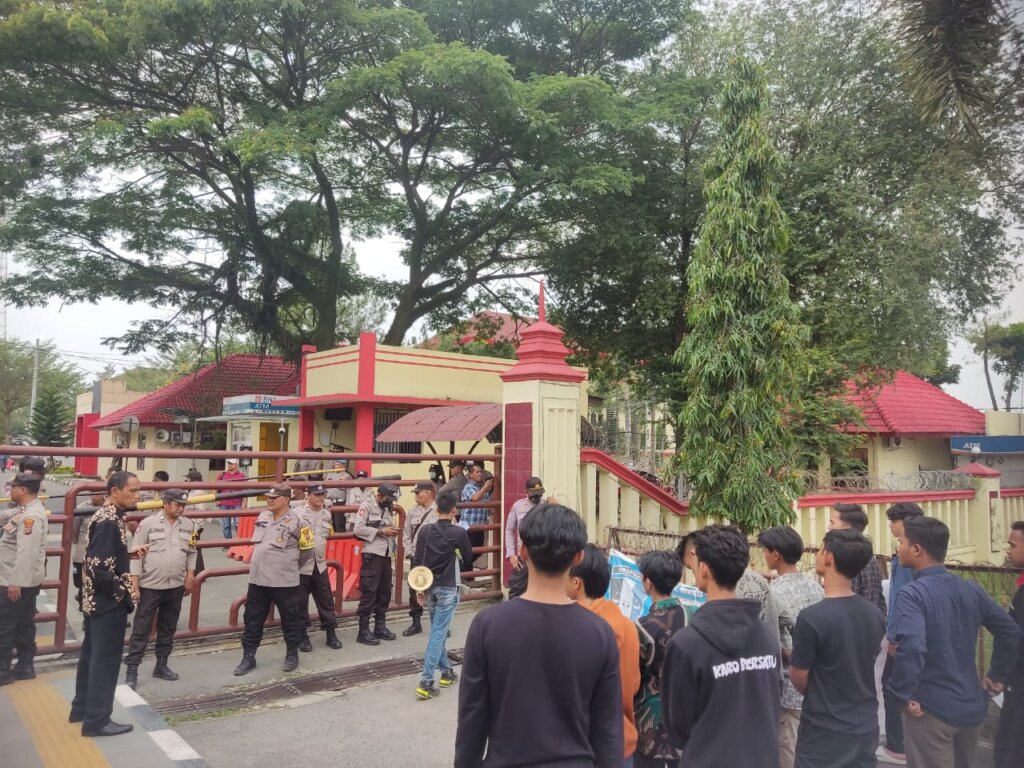 Mahasiswa yang tergabung dalam Wadah Gerakan Pemuda dan Mahasiswa Peduli Sumatera Utara (GPMP-SU) Melakukan Aksi Unjuk rasa didepan Gedung Kepolisian Daerah Sumatera Utara.Jum’at,(14/4/2023).