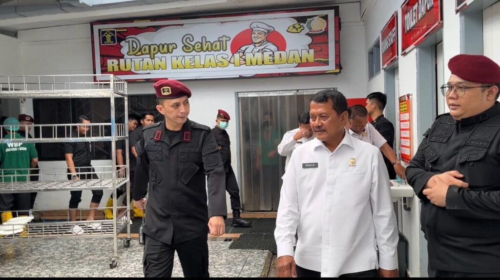 Medan – Direktur Jenderal Pemasyarakatan (Dirjenpas), Irjen Pol. Drs. Mashudi bersama anggota DPR RI Komisi 13, Tengku Ibrahim, Direktur Sistem dan Strategi Penyelenggaraan Pemasyarakatan, Kadek Anton dan Kepala Kantor Wilayah Ditjenpas Sumut, Yudi Suseno melakukan kunjungan kerja ke Rumah Tahanan Negara (Rutan) Kelas I Medan pada. Kamis, 13 Maret 2025. Kunjungan ini bertujuan untuk memastikan kegiatan pembinaan kemandirian dan pelaksanaan dapur sehat yang telah diterapkan di Rutan I Medan berjalan dengan baik dan sesuai dengan standar yang telah ditetapkan.
