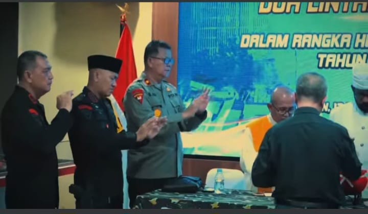 Doa lintas agama dihadiri oleh para tokoh agama dari berbagai keyakinan, termasuk Islam, Protestan, Katolik, Hindu, dan Buddha. Mereka bergantian memanjatkan doa, mengiringi harapan bagi keselamatan, keberkahan, dan kekuatan untuk Korps Brimob yang terus berkomitmen menjaga keamanan dan kedamaian bangsa.