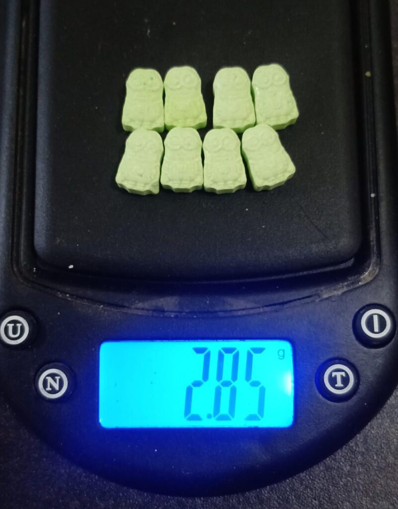 Sedangkan barang bukti yang diamankan dari kedua terduga yaitu: 8 (delapan) butir pil ekstasi warna hijau netto 2,85 gram, 1 (satu) bungkus kotak rokok merk surya, 1 (satu) bungkus plastik putih transparan, 1 (satu) unit hp merk oppo warna putih milik terduga GF dan 1 (satu) unit hp merk relme warna abu-abu milik terduga ES.