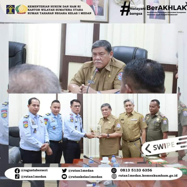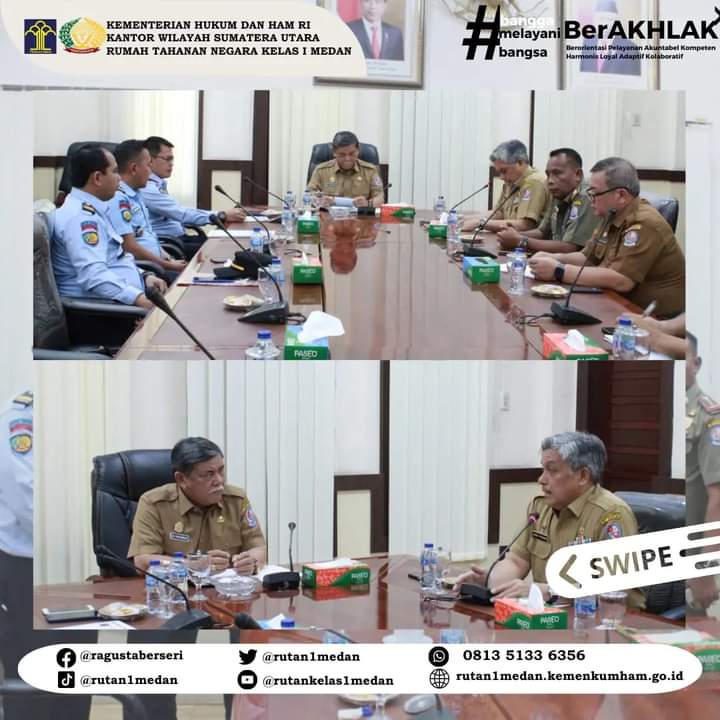 Kepala Rumah Tahanan negara kelas 1 Medan bersama kepala seksi pelayanan tahanan dan kepala sub seksi bimbingan kegiatan kerja hari ini melakukan audiensi dengan pemda deliserdang yang diterima oleh wakil bupati deliserdang, HM. Ali Siregar.