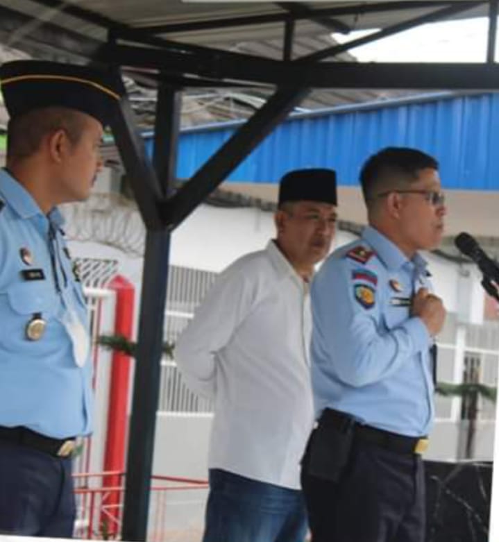 Memberi arahan pada kesempatan upacara kesadaran berbangsa dan bernegara olehwarga binaan, kepala Rutan kelas 1 Medan  memberi arahan dengan tema “NEVER GIVE UP”