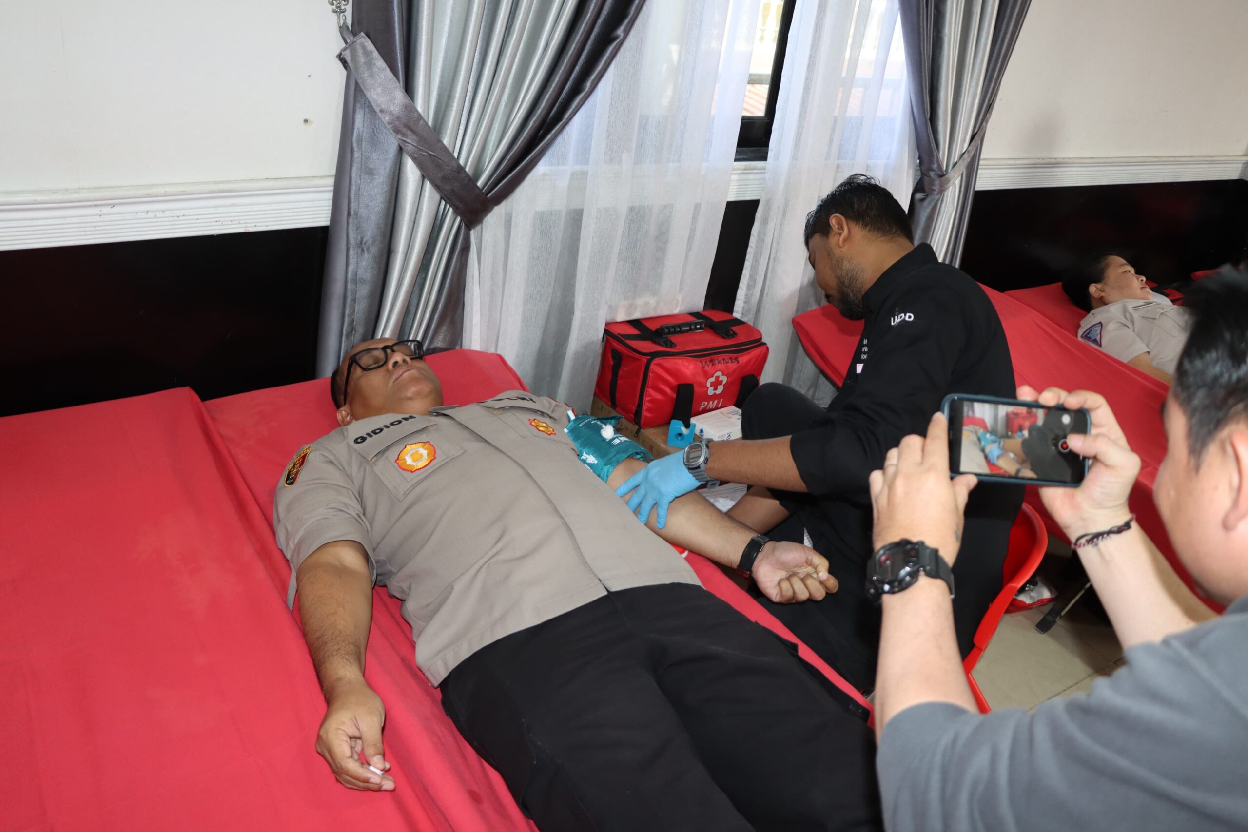 Medan-Dalam rangka memperingati hari jadi Humas Polri yang ke-73 tahun 2024, Polrestabes Medan menggandeng Palang Merah Indonesia (PMI) Kota Medan menggelar bakti kesehatan donor darah demi kemanusiaan.