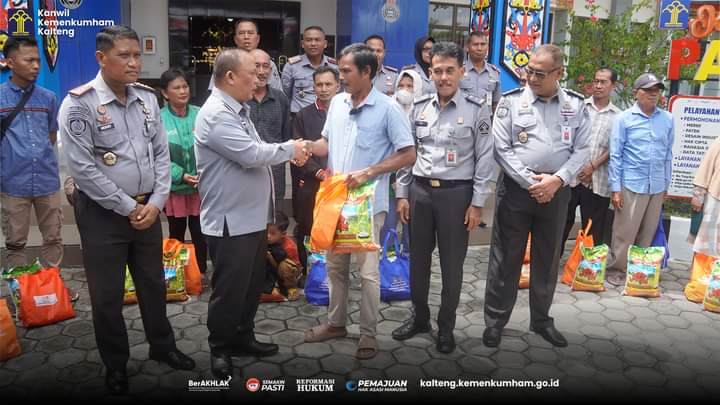 Palangka Raya-Kementerian Imigrasi dan Pemasyarakatan (Kemenimipas) menggelar kegiatan pemberian bantuan sosial bagi keluarga Warga Binaan Pemasyarakatan (WBP) serta masyarakat kurang mampu yang tinggal di sekitar Kantor Wilayah dan Unit Pelaksana Teknis Pemasyarakatan (Rutan dan Lapas). Bantuan sosial tersebut merupakan wujud implementasi dari salah satu program diantara 13 program akselerasi Menteri Imigrasi dan Pemasyarakatan (Agus Andrianto). Kegiatan ini juga merupakan tindaklanjut dari program Asta Cita Presiden dan Wakil Presiden (Prabowo-Gibran) dalam memperkuat penyelarasan, kehidupan yang harmonis dengan lingkungan, serta memantapkan swasembada pangan, Selasa (19/11/2024).