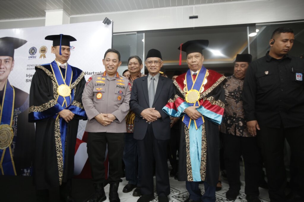 Turut hadi dalam sidang senat terbuka itu Ketua Umum PP Muhammadiyah Prof Dr Haedar Nashir, Kapolri Jendral Listyo Sigit Prabowo, Kapolda Sumut Irjen Pol RZ Panca Putra Simanjuntak, Gubernur Sumut Edy Rahmayadi, Ketua DPRD Sumut.