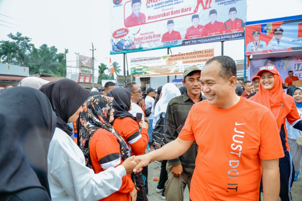 Dalam sambutannya, Bupati Batu Bara Zahir berjanji akan membuat acara jalan santai ini lebih besar lagi di tribun lapangan Kantor Bupati yang baru dengan mengundang Ganjar Pranowo.