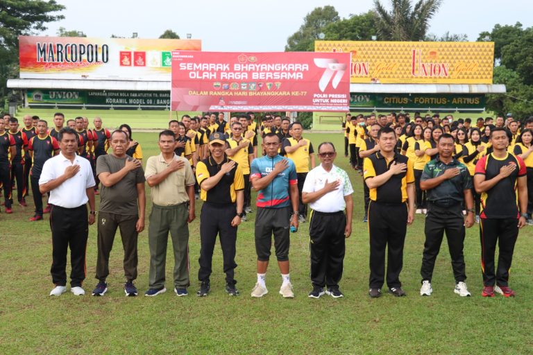 Semarak Olahraga Bhayangkara” digelar dalam rangka memperingati Hari Bhayangkara ke-77 dan HUT Ke-73 Kodam I/BB dengan tema “Sinergitas Untuk Negeri”. Kegiatan ini dipimpin langsung oleh Kapolres Simalungun AKBP Ronald F.C Sipayung, S.H., S.I.K., M.H., pada Selasa, 27 Juni 2023 pukul 07.30 WIB sampai dengan selesai, bertempat di Lapangan Olahraga Koramil Type-A Makodim 0207/Simalungun Jalan Asahan, Km 4,5 Kecamatan Siantar Kabupaten Simalungun, 27 juni 2023