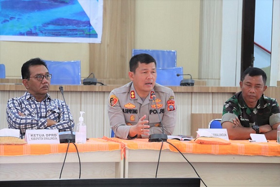 Kapolres Simalungun AKBP Ronald F.C Sipayung, S.H., S.I.K., M.H., memaparkan kesiapan personel Polres Simalungun dalam rangka pelaksanaan Operasi Ketupat Toba-2023 saat menghadiri Rapat Koordinasi Lintas Sektoral Dalam Rangka Kesiapan Pengamanan Perayaan Hari Raya Idul Fitri 1444 H / 2023 M guna Cipta Kondisi Yang Aman dan Kondusif di Wilayah Kabupaten Simalungun.
