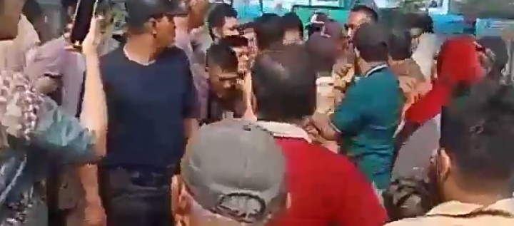 Saat plang dirubuhkan warga Dusun XII,satpam yang berjaga dan mendirikan plang tersebut tidak bisa berbuat banyak,karena kalah jumlah dengan warga komplek PTPN2.