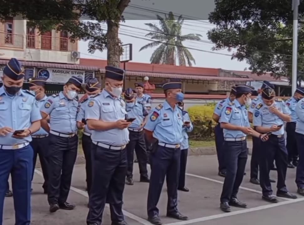 Seluruh petugas dipersilahkan untuk membuka smartphonenya untuk melihat lirik sembari mendengarkan lagu yang putar melalui pengeras suara.