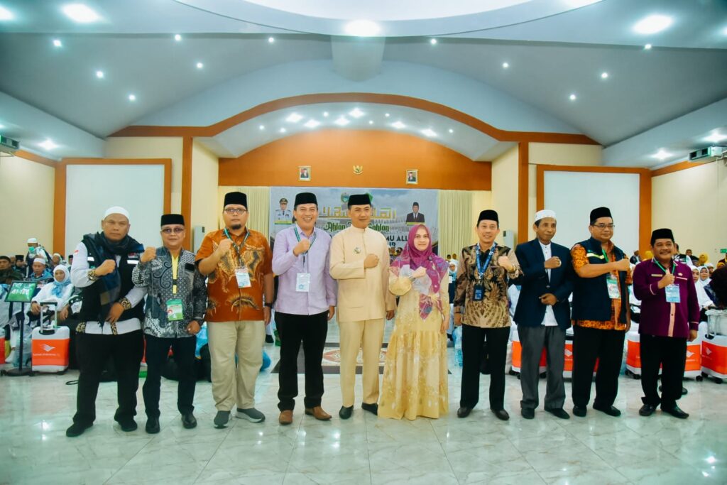 MEDAN – Penjabat (Pj) Bupati Batu Bara H. Heri Wahyudi Marpaung, S.STP, M.AP., didampingi Pj. Ketua Tim Penggerak Pemberdayaan Kesejahteraan Keluarga (TP PKK) Batu Bara Ny. dr. Febyriani Heri Wahyudi menyambut kedatangan jemaah haji asal Kabupaten Batu Bara yang tergabung dalam Kelompok terbang (kloter) 11 Embarkasi Medan 1445 H di Asrama Haji, Medan, Jumat (05/07/2024).