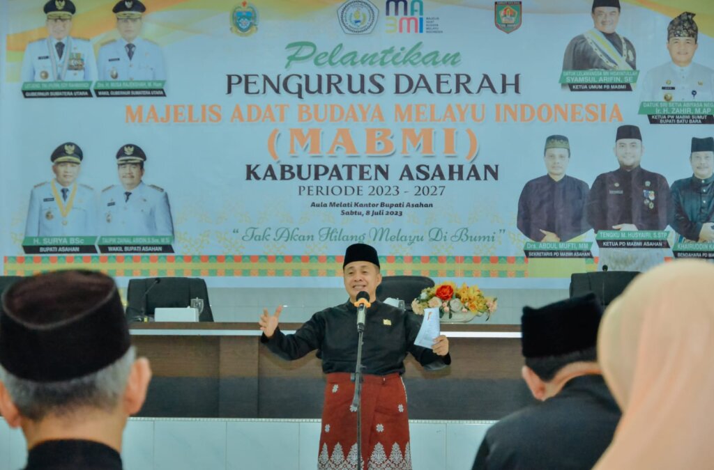 Ketua Pengurus Wilayah Majelis Adat Budaya Melayu Indonesia (PW MABMI) Provinsi Sumatera Utara sekaligus Bupati Batu Bara Ir. H. Zahir, M.AP., melantik Pengurus Daerah (PD) MAMBI Kabupaten Asahan di aula Kantor Bupati Asahan, Sabtu (08/07/2023).