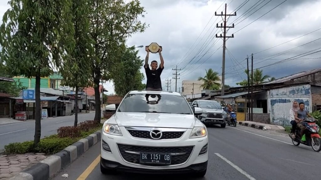 Setelah sukses meraih juara mma interim di kelas starwweight one pride mma pada sabtu kemarin rustam hutajulu kembali ke kota asal nya untuk merayakan kemenangan nya.