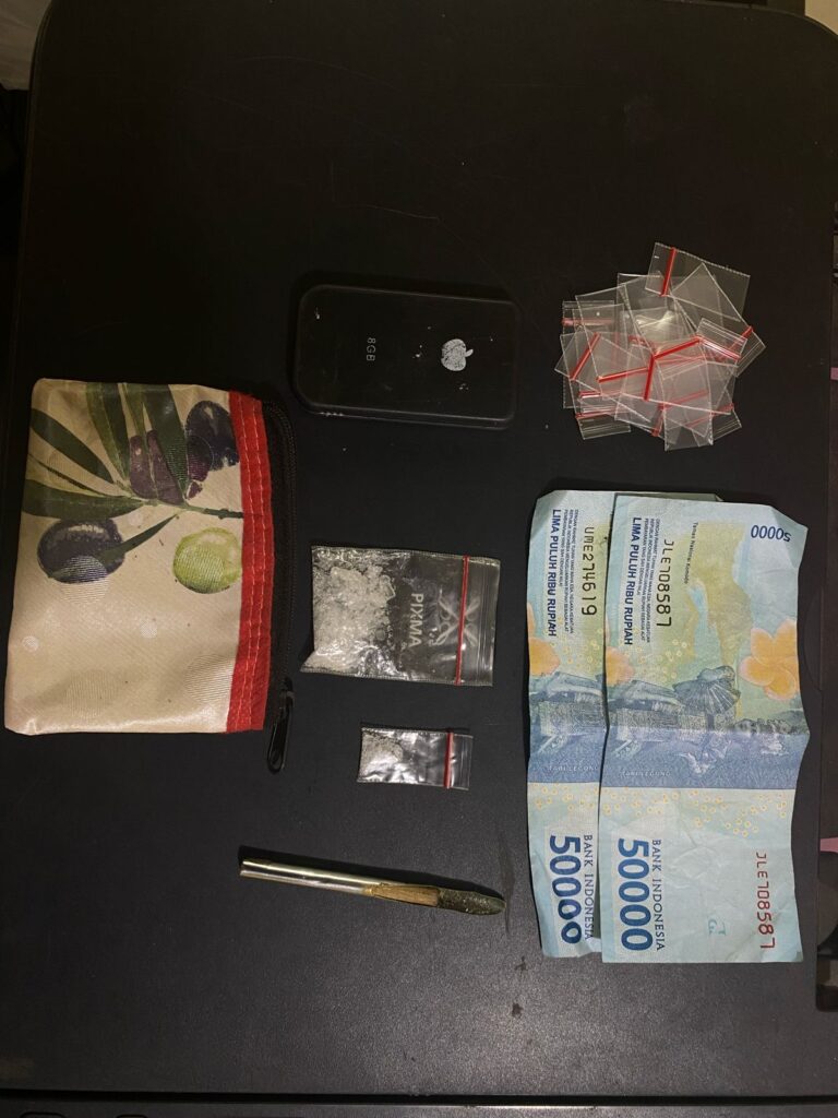 2 paket diduga narkotika jenis sabu berat brutto 1,96 gram, 1 buah timbangan elektrik, 1 buah pipet modif sekop, 20 buah plastik klip kosong, ⁠uang tunai Rp. 100.000 (uang transaksi) dan 1 buah dompet (tempat penyimpanan), Jumat 15/3/2024 sekira pukul 21.00 wib,