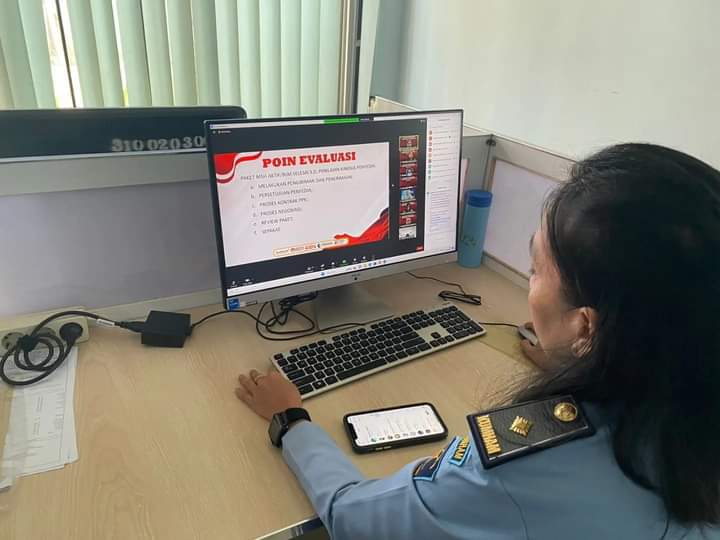Pejabat Pembuat Komitmen (PPK) Lembaga Pemasyarakatan Kelas I Medan, Devi Fajaria Tampubolon, hadir secara daring pada kegiatan evaluasi pencatatan transaksi E-Purchasing, Senin (27/3/2023).