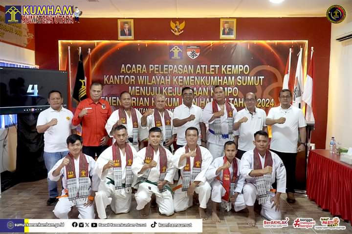 “Dengan mengucap bismillahirrahmannirrahim pada hari ini secara resmi saya berangkatkan tim Kempo Kanwil Kemenkumham Sumut menuju Kejuaraan Kempo Kemenkumham RI Tahun 2024.” Ujar Agung.