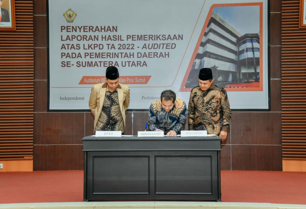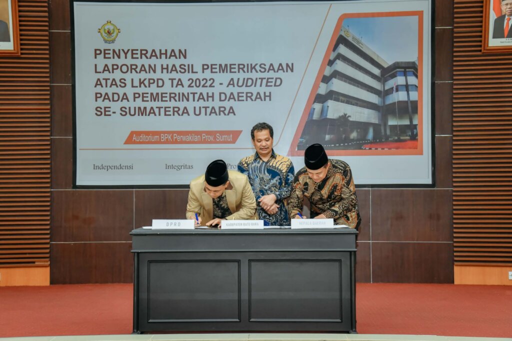 Dengan demikian Laporan Keuangan Pemkab Batu Bara tahun 2022 tersebut kembali mendapatkan opini Wajar Tanpa Pengecualian (WTP) dan ini merupakan yang ke lima kalinya diterima oleh Pemkab Batu Bara dimasa lima tahun kepemimpinan Bupati Zahir.