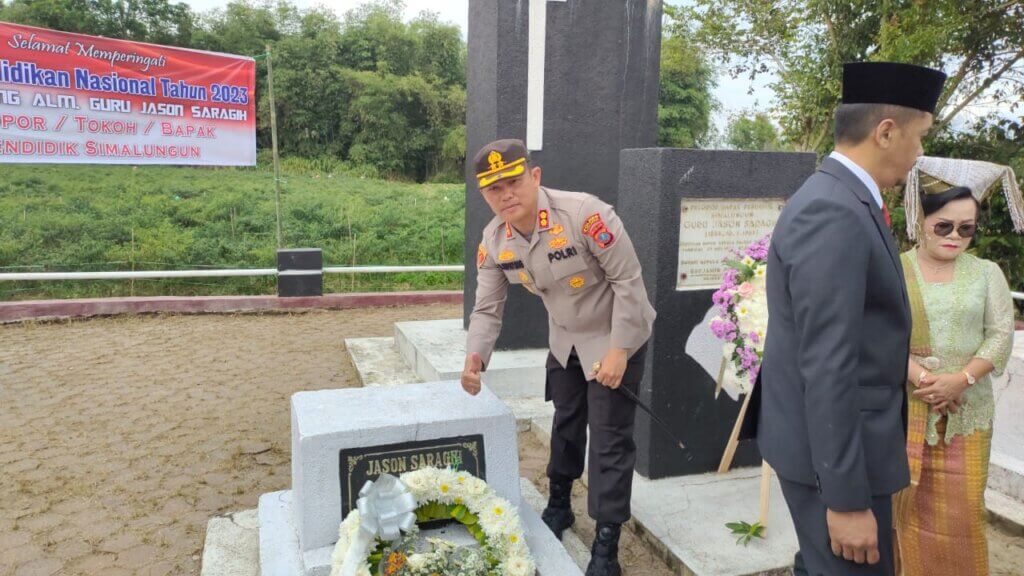 Memperingati Hari Pendidikan Nasional, Kapolres Simalungun AKBP Ronald F.C Sipayung, S.H., S.I.K., M.H., Bersama Forkopimda Ziarah ke Makam Tokoh Pelopor Pendidik Simalungun Guru Jason Saragih, Peringatan Hari Pendidikan Nasional (Hardiknas) Tahun 2023 Kabupaten Simalungun di pusatkan di lapangan Kantor Bupati Simalungun, Pamatang Raya, Simalungun, Sumut, Selasa (2/5/2023).