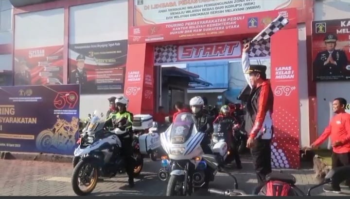 Jajaran pemasyarakatan kanwil kemenkumham sumatera Utara, tepatnya unit pelaksana teknis medan sekitar hari ini menggelar kegiatan touring pemasyarakatan peduli yang merupakan kegiatan touring sekaligus bakti sosial kepada masyarakat dalam rangka menyambut HUT Pemasyarakatan ke 59 tahun