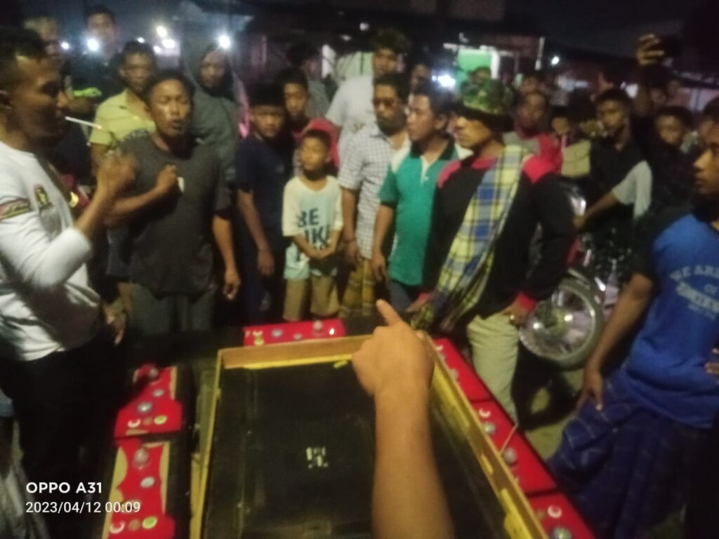 Dari lokasi tersebut,warga mengamankan 3 Unit mesin judi meja tembak ikan.Pihak kepolisian yang kecolongan baru hadir ketika mesin judi meja tembak ikan di hancurkan masyarakat dan aparat tidak dapat berbuat apa-apa.