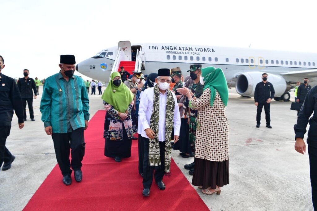 Setibanya di Bandara Minangkabau Padang sekitar pukul 17.50 WIB, Wapres rencananya akan disambut oleh Gubernur Sumatera Barat Mahyeldi Ansharullah, Pangdam I/Bukit Barisan Mayjen TNI A. Daniel Chardin, Kapolda Sumatera Barat Irjen Suharyono, Danlanud Sutan Sjahrir Kolonel Nav Saeful Rakhmat, serta Danlantamal II Laksamana Pertama TNI Benny Febri.