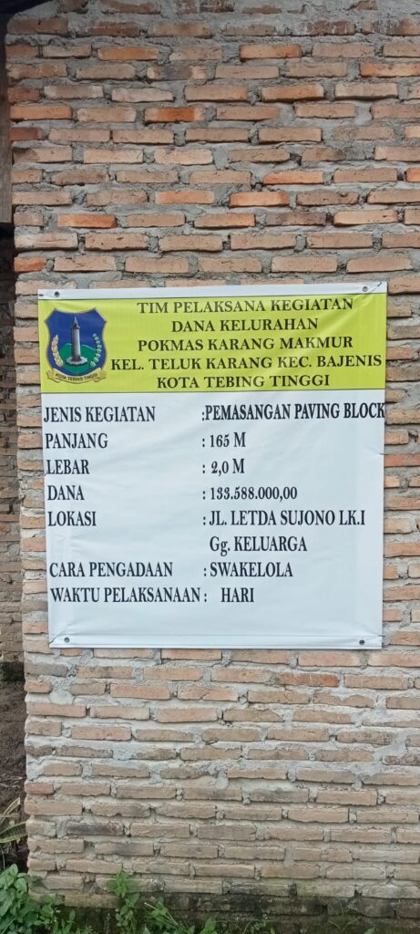Warga Masyarakat di Lingkungan I Gang Keluarga Kelurahan Teluk Karang Kecamatan Bajenis Kota Tebing Tinggi terlihat begitu gembira dikarenakan akses jalan mereka sepanjang 165 M sudah terlihat rapi dan kokoh dengan adanya pemasangan paving block ,hal ini dikatakan oleh Irfan (26) salah seorang warga setempat pada beberapa Awak Media pada Sabtu (15/11/2025).
