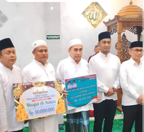 Pada safari subuh ini, mewakili Wali Kota Abu Kosim menyerahkan bantuan Pemko Medan sebesar Rp 50 juta untuk kemakmuran masjid kepada BKM Masjid Al-Ikhlas.