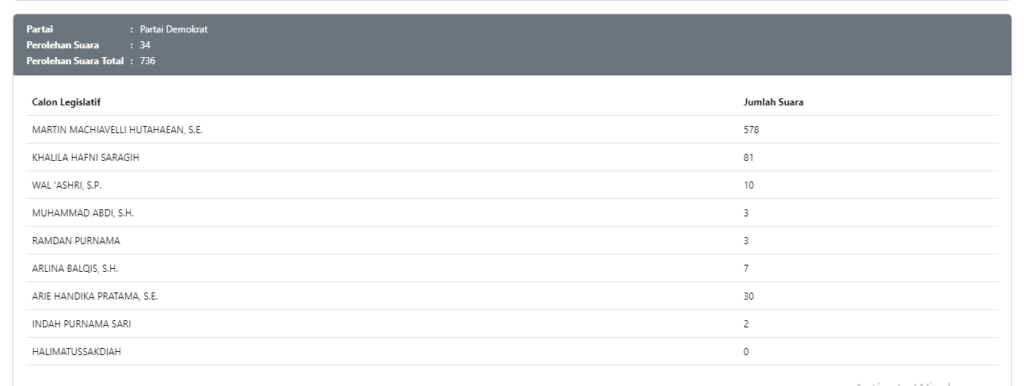 • Kandidat dengan Suara Terbanyak: Martin Machiavelli Hutahaean, S.E. (578 suara), diikuti oleh Khalila Hafni Saragih (81 suara).