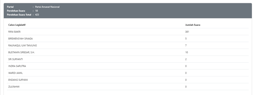 • Kandidat dengan Suara Terbanyak: Rifai Bakri (381 suara), diikuti oleh Bustamin Siregar, S.H. (10 suara).