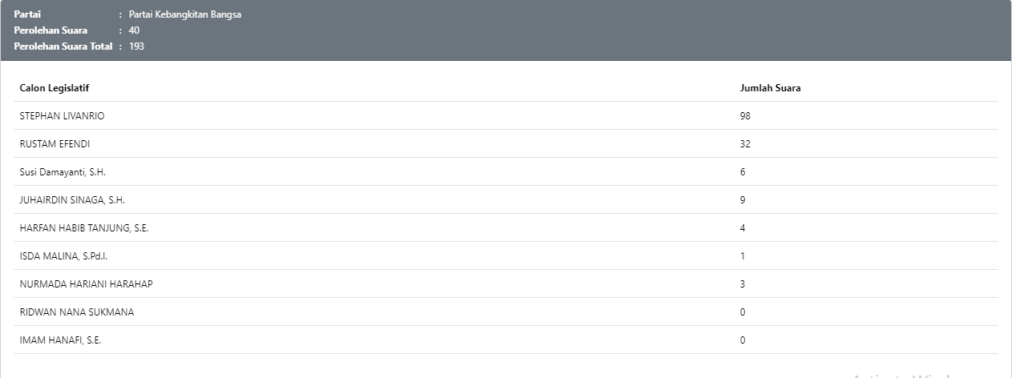 • Kandidat dengan Suara Terbanyak: Stephan Livanrio (98 suara), diikuti oleh Rustam Efendi (32 suara).