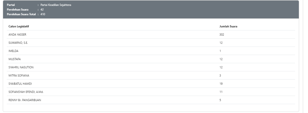 • Kandidat dengan Suara Terbanyak: Kaharudin Nasution, S.H. (272 suara), diikuti oleh Mersi (8 suara).