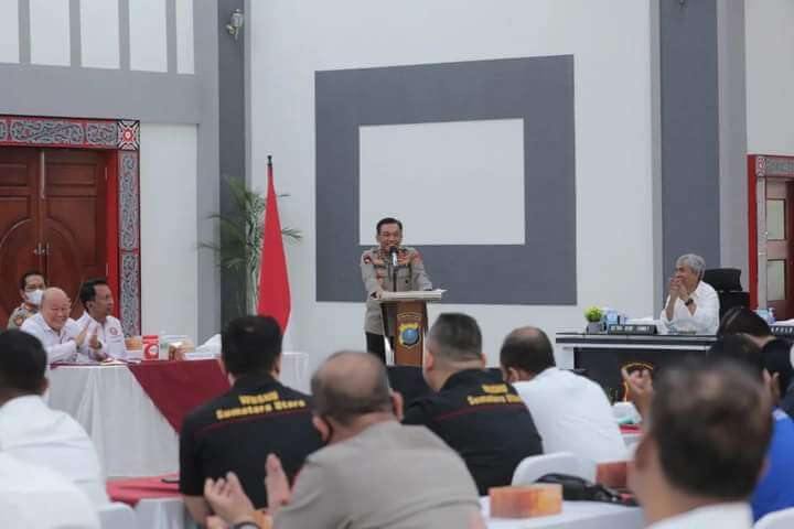 Kapolda Sumut Irjen Pol Drs. R. Z. Panca Putra S., M.Si menggelar silaturahmi dengan pengurus cabang olahraga Sumut bertempat di Aula Tribrata Mapolda Sumut, Kamis (03/11)