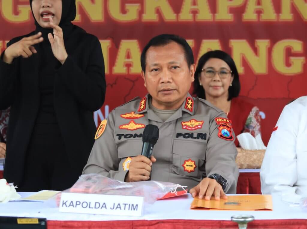 Kapolda Jawa Timur Irjen Pol Toni Harmanto bersama instansi terkait, merilis hasil pengungkapan tindak pidana Upal, pada Kamis (3/11/ 2022) di depan gedung Mahameru Mapolda Jatim.