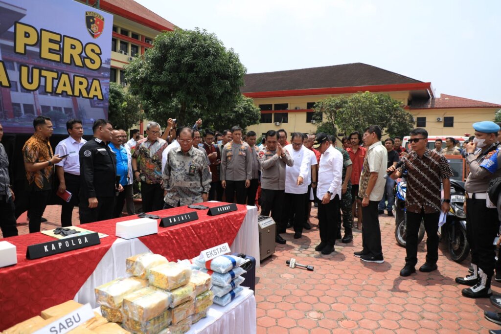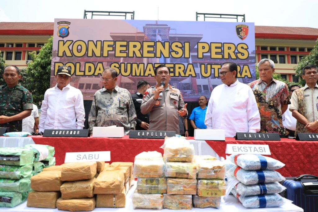 Adapun dalam Release kepada awak pers dihadiri Gubernur Sumut H. Edy Rahmayadi, Kapolda Sumut Irjen Pol Drs RZ Panca Putra S. M.Si. , Ketua DPRD Provinsi Sumut Drs Baskami Ginting, Kasdam I/BB Brigjen TNI Boni Cristian Pardede, Kepala BNN Sumut Brigjen Pol Toga Panjaitan, Dirkrimum Poldasu Kombes Pol Sumaryono, Kapolrestabes Medan Kombes Pol Valentino Alfa Tatareda, S.I.K., Kabid Humas Polda Sumut Kombes Pol Hadi Wahyudi, S.I.K., S.H., dan Wadirkrimum Poldasu AKBP Alamsyah P Hasibuan, S.I.K.