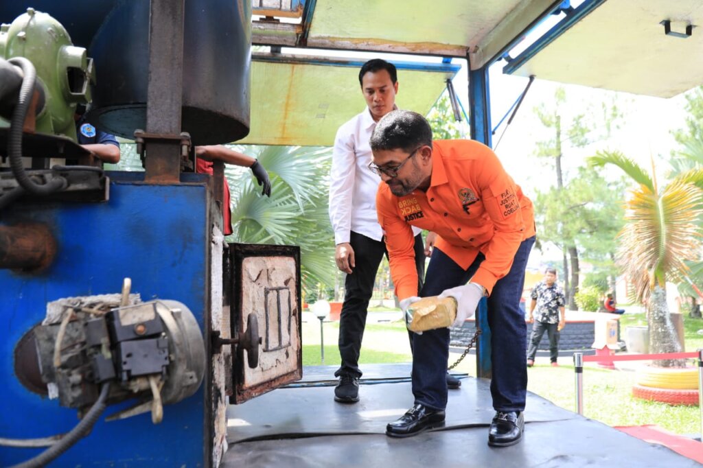 Selanjutnya, hasil tangkapan narkoba berbagai merek itu pun dimusnahkan Polda Sumut bersama Komisi III DPR RI dengan menggunakan mesin incenarator, Kamis (15/6).