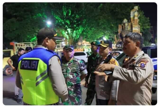 Menyempatkan patroli dengan berjalan kaki menyusuri Lapangan Merdeka, Wakapolres Binjai bersama Kasdim 0203/Lkt serta personil gabungan menghimbau kepada warga masyarakat yang menikmati hiburan pertunjukan musik agar tetap menjaga keamanan dan ketertiban,