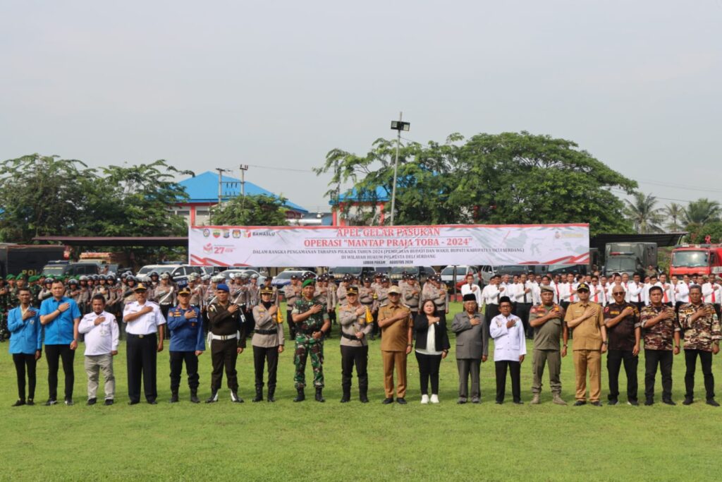 Deli serdang-Dalam rangka menjaga keamanan dan ketertiban masyarakat (Kamtibmas) pada pelaksanaan Pilkada Serentak Tahun 2024. Polresta Deli Serdang melaksanakan Apel Gelar Pasukan Ops Mantap Praja Toba 2024 di Lapangan Hijau Polresta Deli Serdang, Senin (19/08/24).