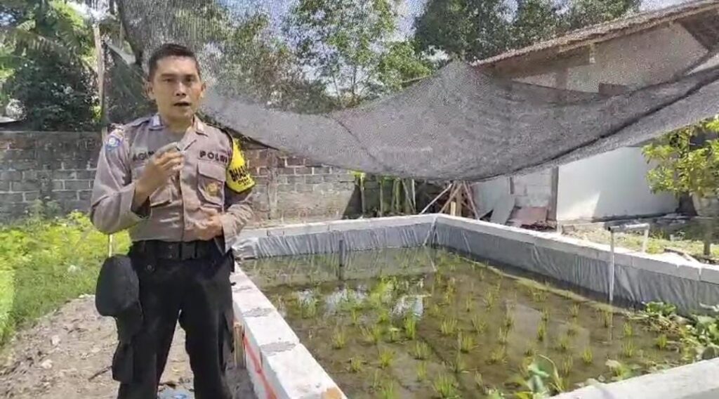 Nganjuk – Dalam rangka mendukung program ketahanan pangan nasional, Polsek Lengkong, Polres Nganjuk mengambil langkah inovatif dengan membangun kolam belut yang terintegrasi dengan sistem mina padi, Rabu, (04/12/2024).