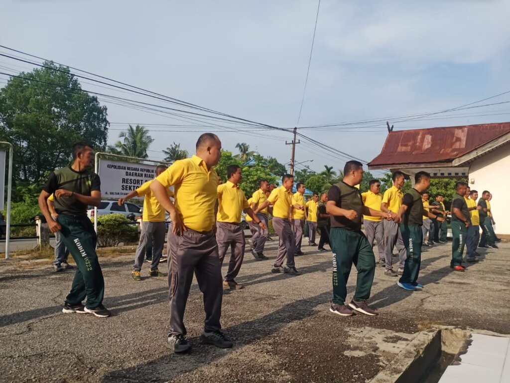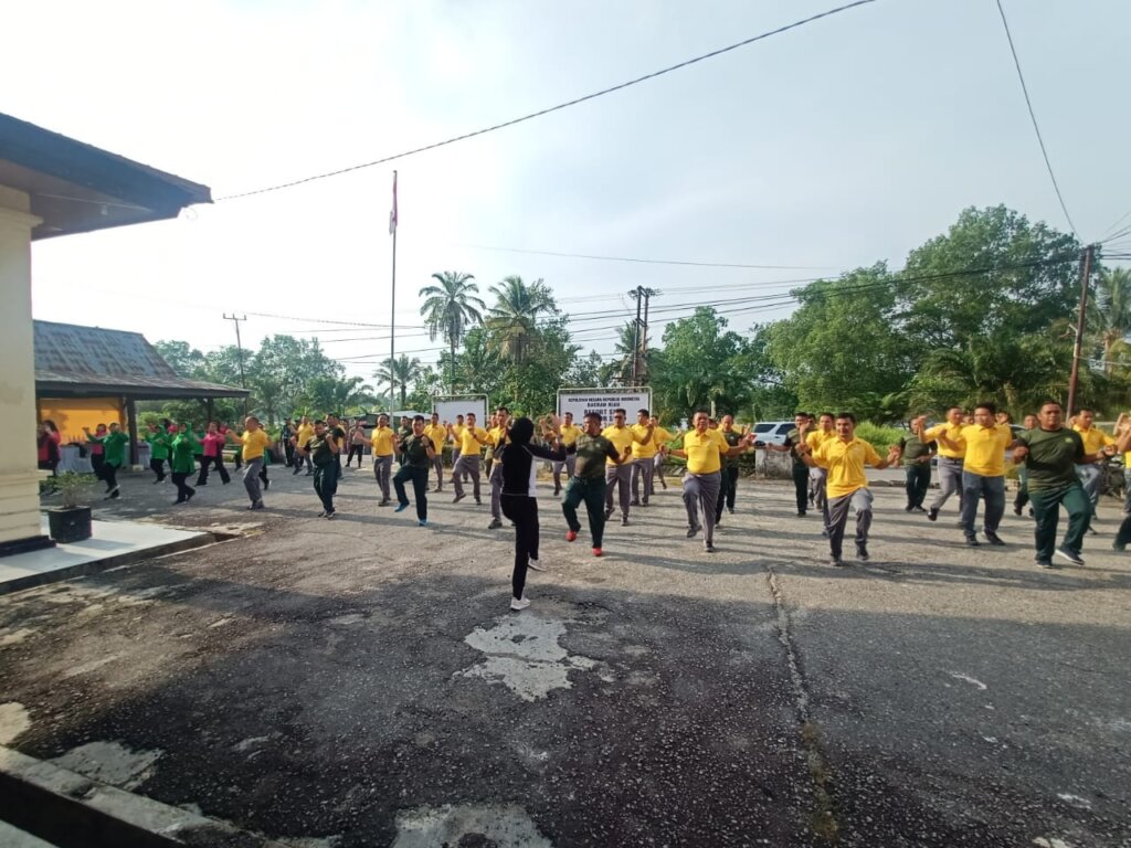 Siak..jelang Hari Bhayangkara ke 77 tahun 2023 Berbagai kegiatan dilaksanakan oleh Polsek Siak diantaranya senam bersama yang diikuti oleh personil TNI dari Kodim 0322 Siak dan juga ibu ibu Bhayangkari Ranting Siak serta ibu ibu Persit dari Kodim 0322 Siak