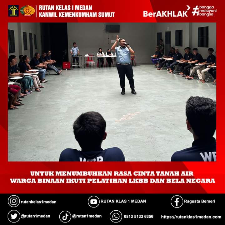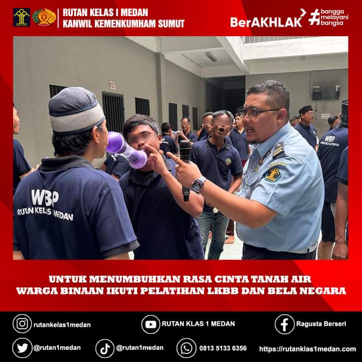 Rutan Kelas I Medan Kanwil Kemenkumham Sumut kembali mengadakan kegiatan Pelatihan LKBB dan Bela Negara Bagi Warga Binaan di Paviliun Fatmawati, Selasa (27/06/2023)